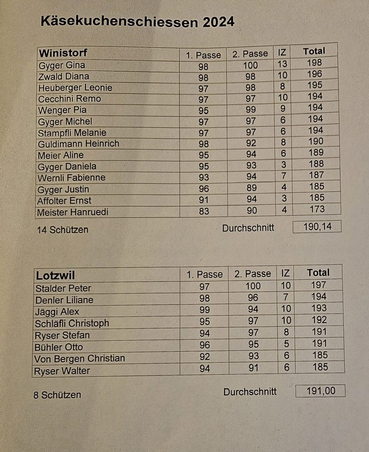 Am Donnerstag, 10. April 2025 fand das Käsekuchenschiessen 2025 in Lotzwil statt.
